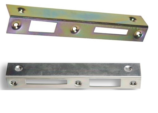 Zapadací plech úhlový - pro zámek s roztečí 72 nebo 90 mm.