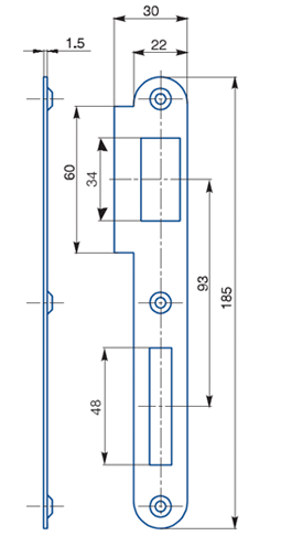 zapadací plech rovný - pro zámek s roztečí 90mm , většinou pro dvoukřídlové dveře