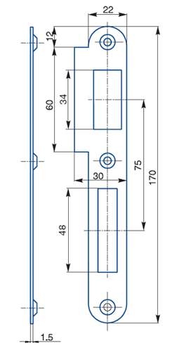 zapadací plech rovný - pro zámek s roztečí 72mm , většinou pro dvoukřídlové dveře