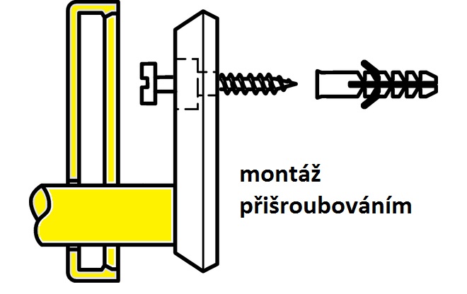Montáž (viz obrázek):přišroubování základny na stěnu pomocí vrutů (průměr vrutů 5mm)