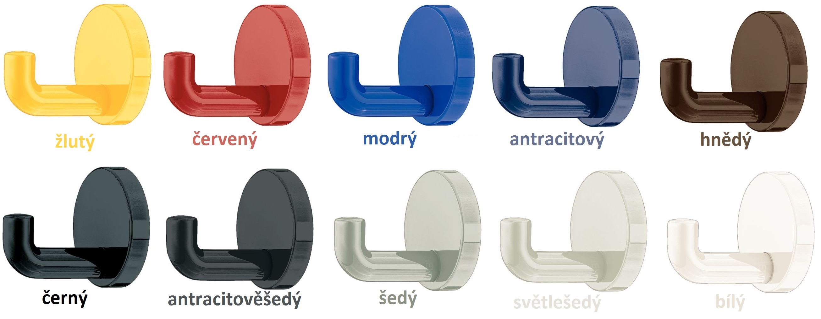 Šatní háček z polyamidu. Je vyráběný na zakázku, cena je proto orientační a dodací doba je delší. K dispozici také v jiných barvách.