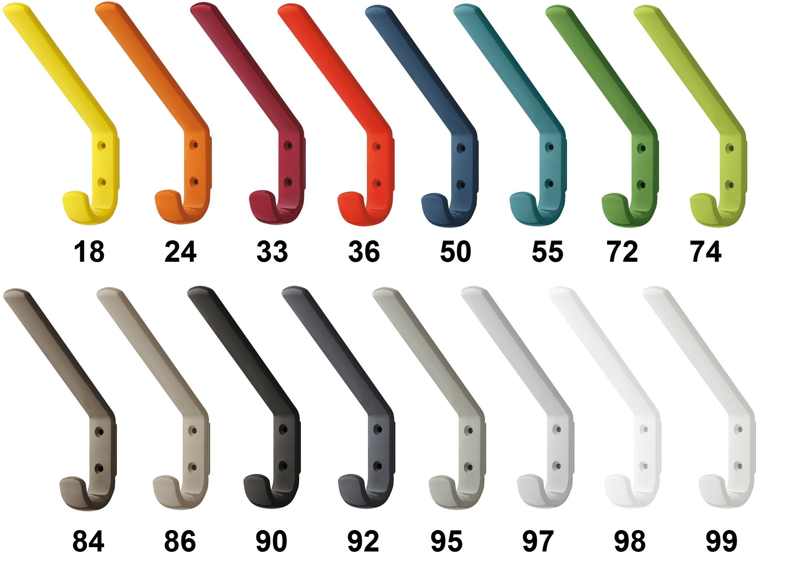 Šatní háček z polyamidu. Je vyráběný na zakázku, cena je proto orientační a dodací doba je delší. K dispozici také v jiných barvách.