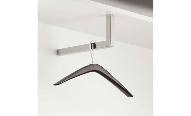 Šatní nerezové hranaté držadlo pro zavěšení ramínek na kabáty.