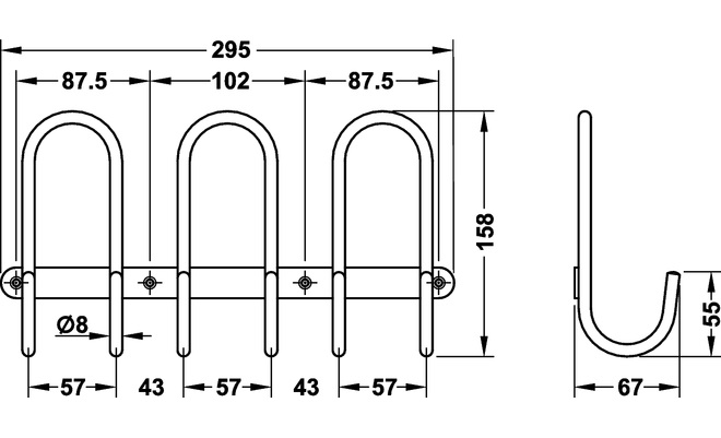 Šatní nerezový komplet se 6-ti háčky, matně broušený.