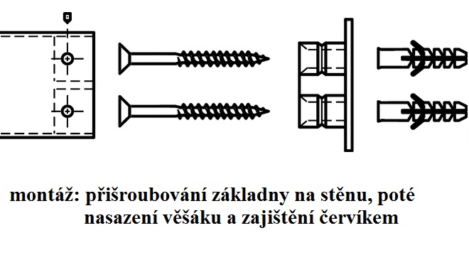 Šatní nerezový pevný věšák k namontování na stěnu.