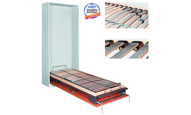 lamelový rošt s nastavitelným podhlavníkem a 28 lamelami, uložení lamel na přizpůsobivých pouzdrech s podpružením a s vylepšenou zónou pro ramena, s 5 stupňovou zesílenou střední zónou a středovým pásem, stupeň tvrdosti plynule nastavitelný