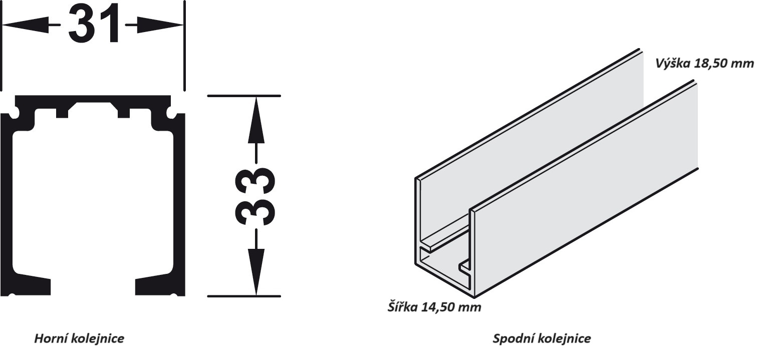 Horní kolejnice tady nejde objednat, protože jsou stejné jako kolejnice na posuvné dveře. Proto prosím přejděte ZDE a objednejte si kolejnici ve variantě typ A podle délky kterou potřebujete.