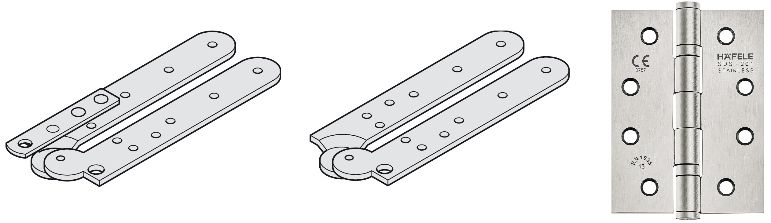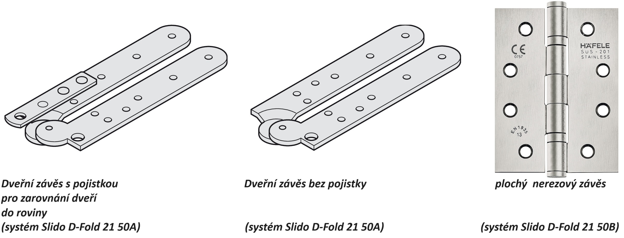 - ocelový závěs s pojistkou který drží zavřené dveře v rovině - ocelový závěs bez pojistky - plochý nerezový závěs