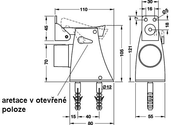 Montáž: kovová obdélníková základna na dně se montuje pomocí dvou přiložených šroubů, na základnu se potom jednoduše přišroubuje stavěč dveří.