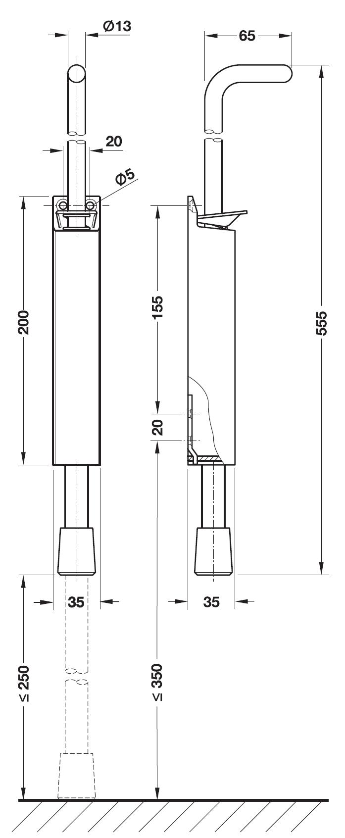 • Materiál hliník, povrchová úprava nerezová eloxovaná, nebo stříbrná smaltovaná, nebo stříbrná eloxovaná • Zdvih: 250 mm • Hmotnost dveří: <80 kg • Pro šířky dveří: <1200 mm • Pro výšku dveří <2200 mm