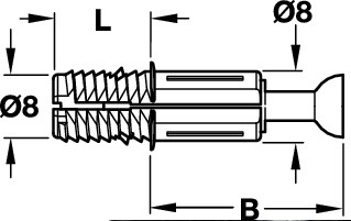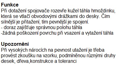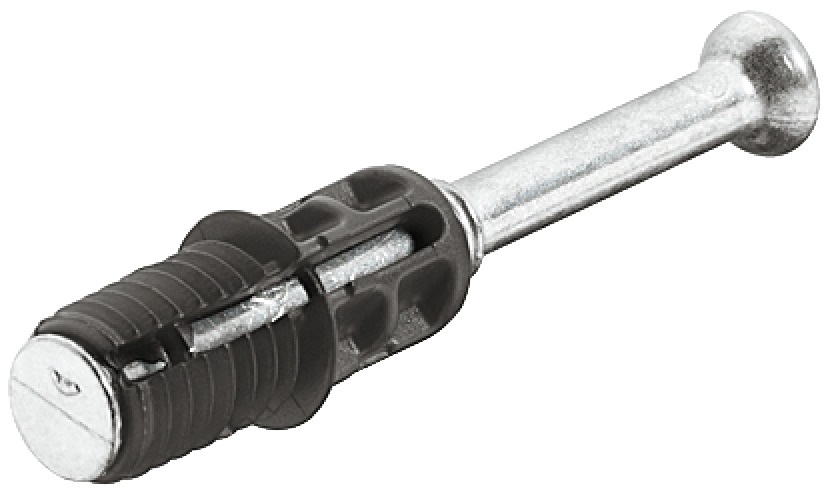 Použití: pro jednostranné použití, pro průmysl i ruční výrobu, pro snadno montovatelný nábytek Materiál: táhlo - zinkový odlitek, hmoždinka plast Montáž: k vsazení a vytažení bez nářadí