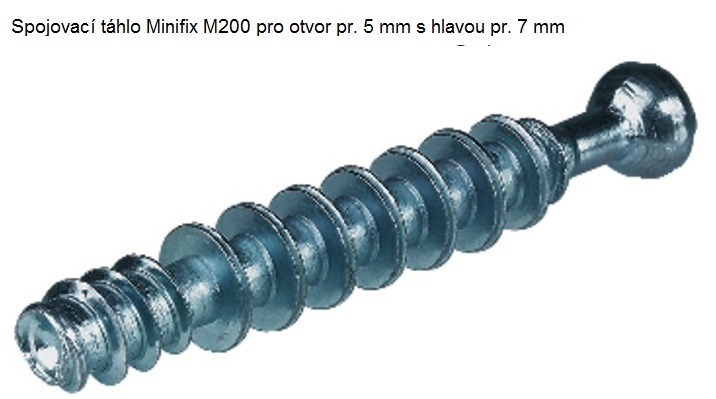Spojovací táhlo Minifix M 200, pro otvor 5 mm, s hlavou 7 mm