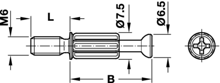 Materiál: ocel, dřík: plast Závit: M6 Drážka: křížová PZ2 Délka záitu L: 7,5mm Rozměr B: 34 mm Balení: 100 nebo 2000 ks
