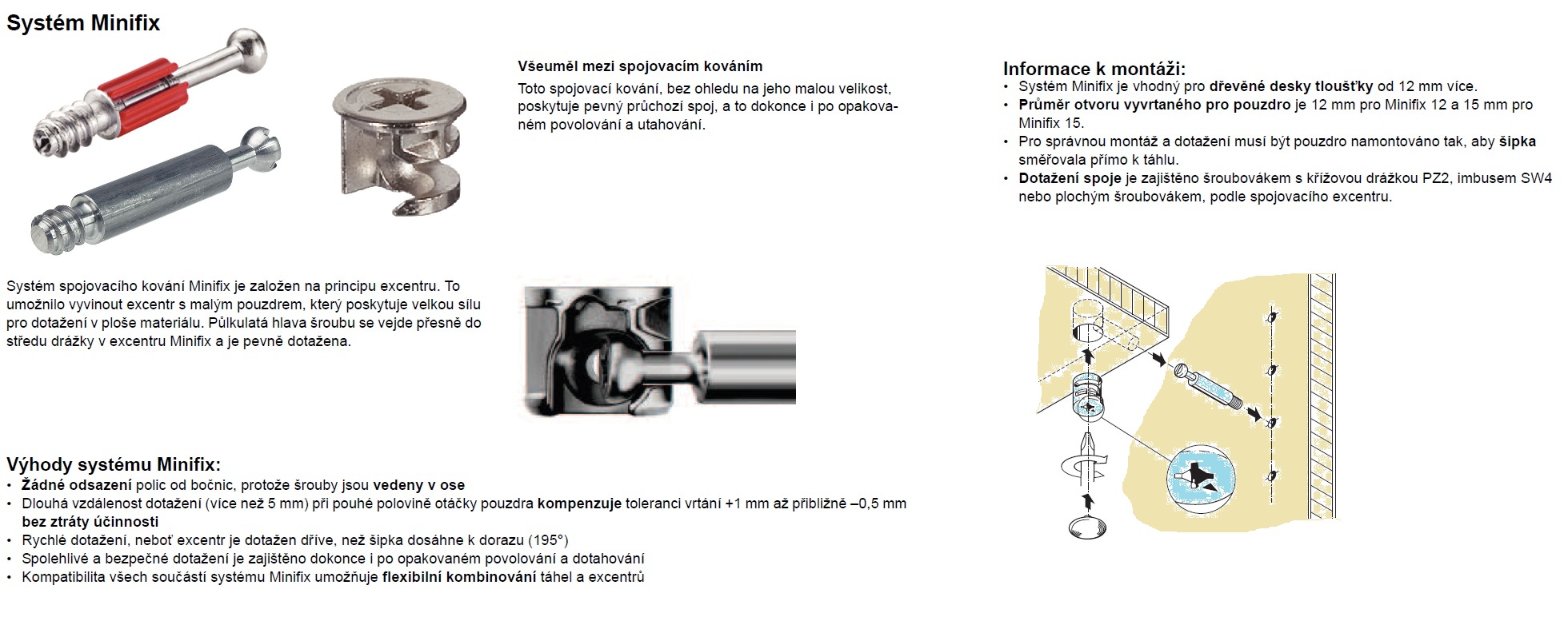 Spojovací táhlo Minifix S 200 pro otvor pr.5 mm, se závitem M6