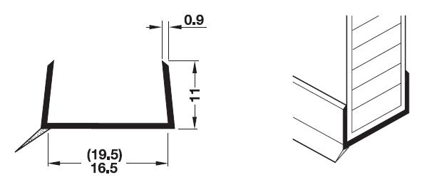 Tento profil spolehlivě zabraňuje vnikání vlhkosti do spodní hrany soklu. Nasazuje se obvykle na laminované dřevotřískové desky o síle 16mm nebo 19mm.