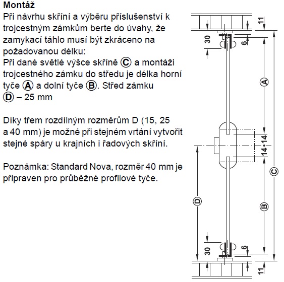 Pro správnou funkci třícestného zámku je třeba k zámku objednat profilové tyče, vodítko tyče, zamykací čep, záchytné háčky a vložka zámku.