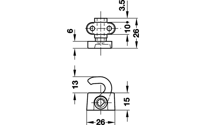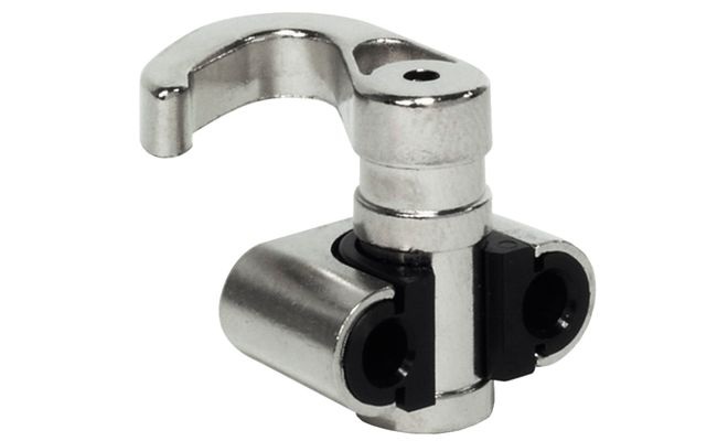 Záchytné háčky pro trojcestné zámky pro průměr profilové tyče 6mm nebo 8mm. Materiál zinkový odlitek, poniklovaný Provedení s plastovým vedením. Montáž k přišroubování.