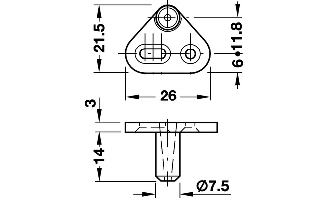 Zamykací čep třícestného zámku s patkou pro přišroubování
