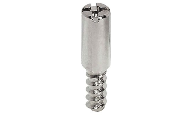 Zamykací čep pro trojcestné zámky se závitem do dřeva. Materiál ocel, povrch leštěný nikl. Montáž k přišroubování. Provedení souměrné nebo excentrické pro lepší seřízení přítlaku.