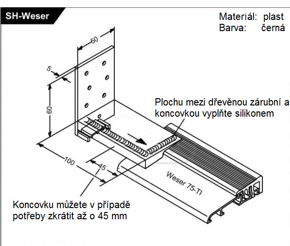 Koncovka pro spojení prahu se zárubní.