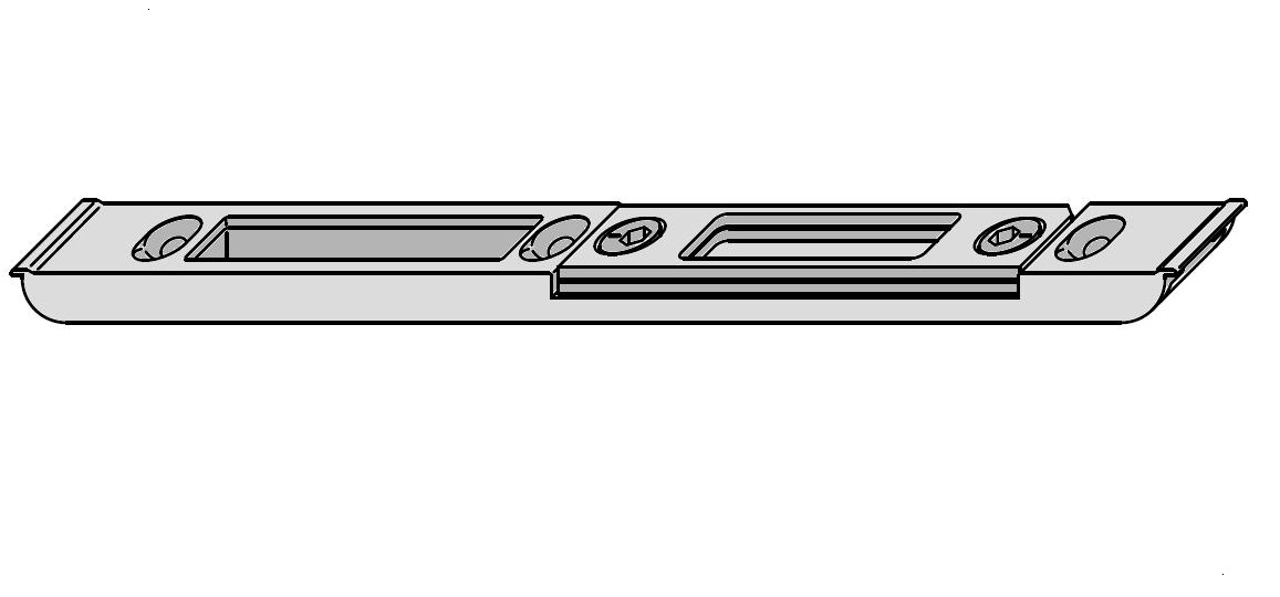 Verze bez zadlabání - v tomto případě musí být mezera mezi křídlem a rámem dveří 12mm (u zavřených dveří mezera, prostor nad kováním). K protiplechu se navíc přidají dvě plastové ukončovací koncovky č.43718 (viz obrázek) které naleznete ZDE
