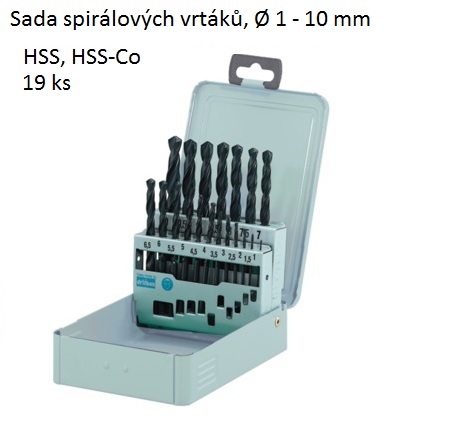 Sada 19 ks spirálových vrtáků Ø 1-10 mm,  HSS a HSS-Co |