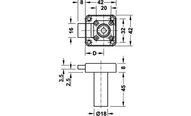 Nábytkový zámek , systém SYMO, s prodlouženým tělem (válcem) zámku.