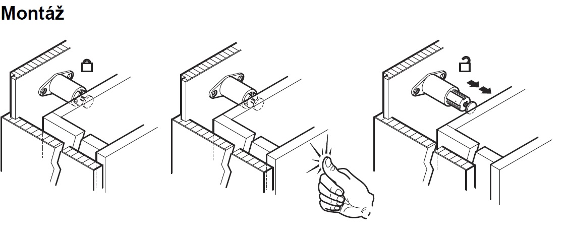 Pružinová západka pro otevírání zásuvek bez úchytek.
