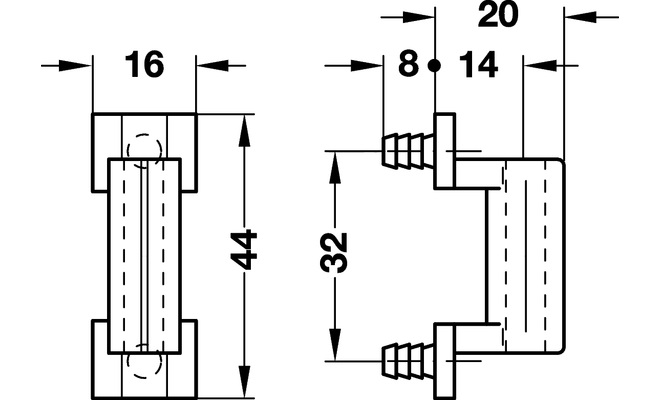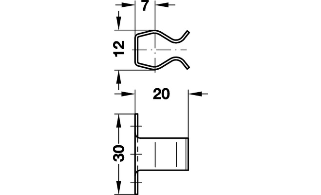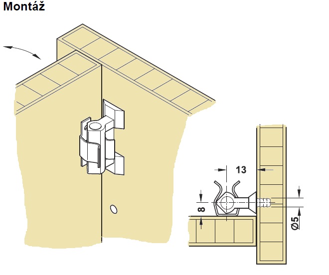 Montáž západky přišroubováním, protikus k naražení do řady otvorů s roztečí 32 mm.