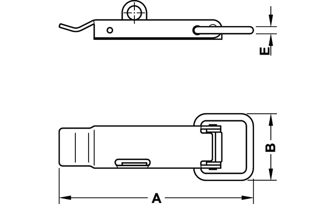 Bednový uzávěr s okem pro visací zámek.Materiál pozinkovaná ocel.