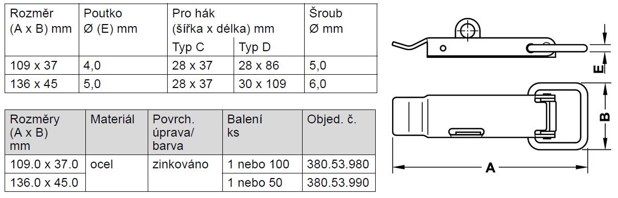 | 380.53.980 | 109 x 37 mm | 1ks | 4 dny | 76,27 Kč |  |  | 380.53.990 | 136 x 45 mm | 1ks | 4 dny | 149,99 Kč |  |  |