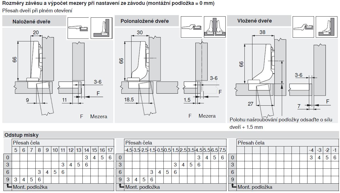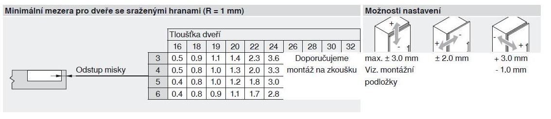 - Celokovový závěs, poniklovaný - Úhel otevření 100° - S zavírací mechanikou (pružina) - Montáž a demontáž dvířek na korpusu bez nářadí - Nastavitelnost ve třech směrech (s odpovídající montážní podložkou) - U techniky INSERTA navíc montáž misky bez nářadí