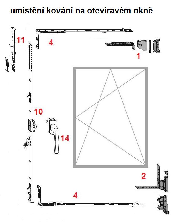 Používá se u dřevěných oken jako součást horního pantu u otevíravých oken.