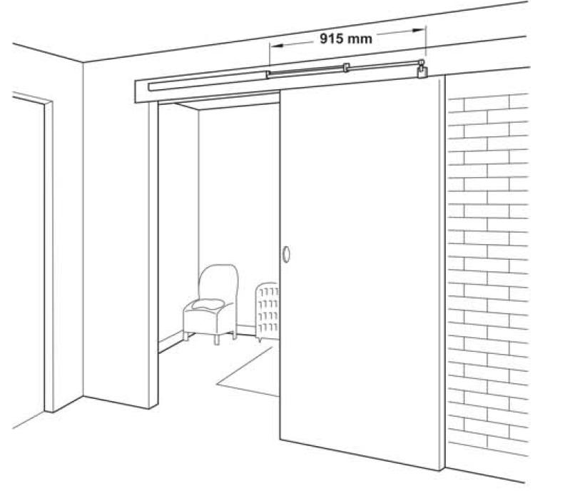 Dveřní zavírač na posuvné jednokřídlové dveře.