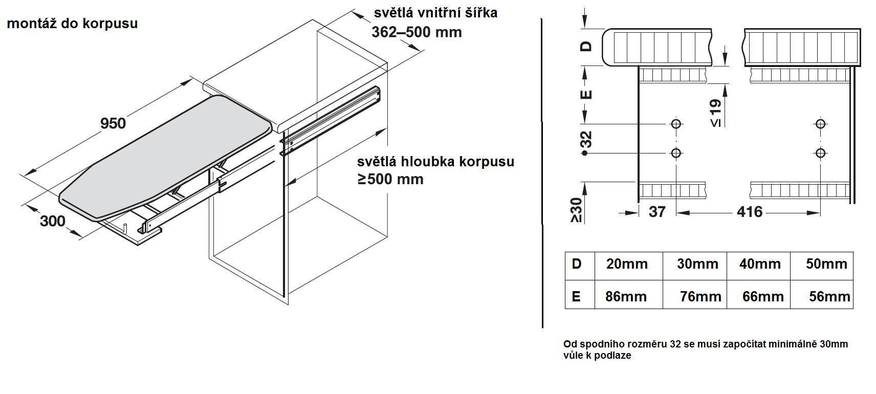 Žehlicí prkno výsuvné zásuvkové s šedými pruhy