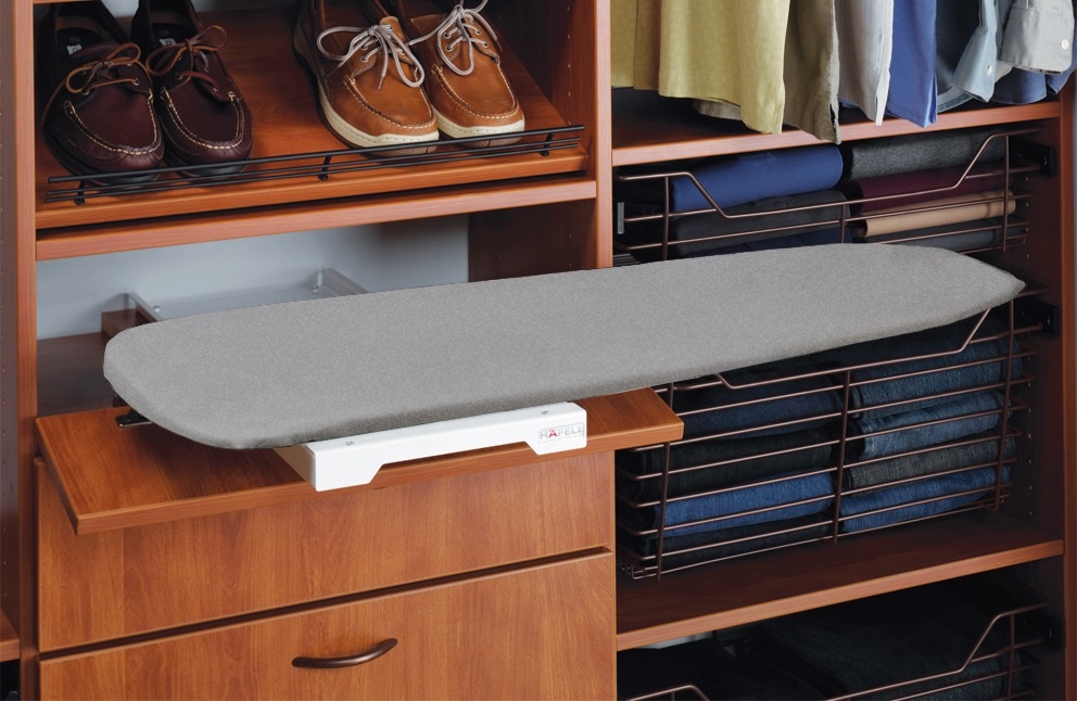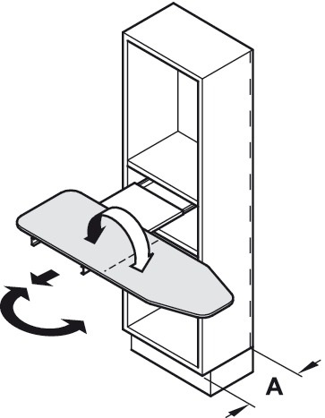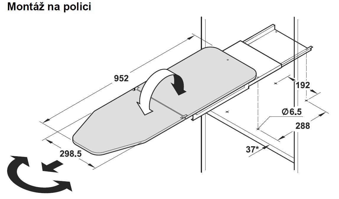 Pro montáž do skříně na polici. Kování skládací, výsuvné a otočné o 180 stupňů. Aretace po 15 stupních